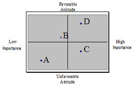 The two scales can be combined to develop insight into the nature of the challenge. Suppose employees residents are asked about their satisfaction and attitude toward four dimensions A, B, C, and D. Their responses are averaged and shown below.