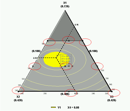 X3=16.3%, X4=8%, to be the highest at 397.5. The red
